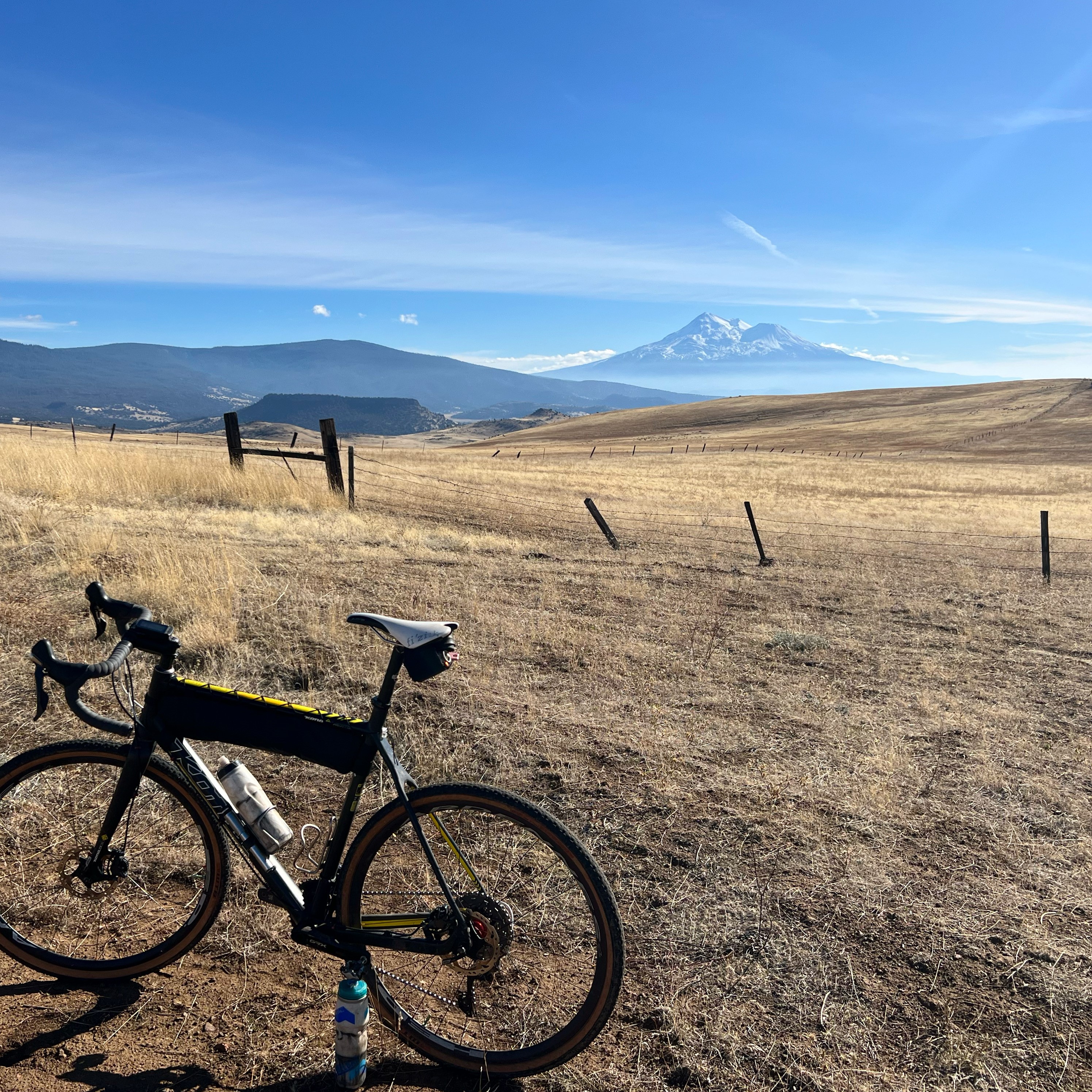 Originally called the Honey Badger Strade Bianche because the granite roads in the hills around Montague reminded me of the white roads of Italy used in the European classic road race the Strade Bianche. This Honey Badger route makes up a large chuck of the northern part of the Shasta Gravel Hugger race has become a gravel race classic. Like most of the loops in the Shasta Valley, it’s best done in the late winter/early spring season. It can be very warm and windy if left to a summer time ride. The sun that makes the Shasta Valley such a good winter riding destination makes things pretty toasty come August. The Montague Honey Badger is the friendliest route for road bikes with big tires or gravel bikes with smooth tread and less volume. A 700x35ish semi slick is the jam. If its been wet then a wider tire to help float on the soft granite roads is the ticket. Same goes if Siskiyou County has recently graded and graveled some of the roads, especially the descents as they get pretty loose and squirrely if you’re pin balling down them on a 700x32c road tire. If its wet and soft, a 700×40 works really well. for The route has two options depending on the recent weather. The section that climbs up Townsend Rd is clay based dirt and if there has been recent rain or raining on the day of, it can be impassable. To do the wet route option, stay straight on Snowden Hovey Gulch Rd at the 16.7 mile mark instead of turning left onto Ball Mtn Little Shasta Rd. That will take you up the course to where Townsend Rd dumps back in at the summit and the highest point on the course. Of course, if it’s dry, turn left on Ball Mtn Little Shasta Rd at the 16.7 mile mark and then take the right turn up Townsend Rd at mile 18.2 of the dry route. This route option ads a couple of miles to the route, but is an easier climb to the summit. If you want to do a shortened version of either the wet or dry routes, there’s now an option with a route for both. They lop off some of the outer parts of the route and allow you to leapfrog ahead of the longer route riders. There’s a very good reason I know all the shortcuts. 😉