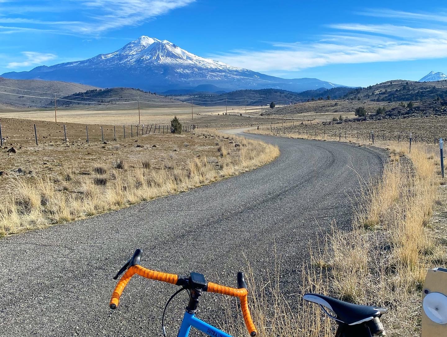 This is the first ride I ever planned out in the Shasta Valley. Starting and finishing in Weed, overlooked by Mt Shasta, and now part of the Shasta Gravel Hugger race course. If you notice, the map has you staging at the Mt Shasta Brewing Company. They are always happy to have a tired cyclist grab a bit to eat and a cold one after a ride, but if you’re going to start the loop early, give them a call and let them know you’re going to be parking in their lot before they open up so they don’t wonder who is taking up their spaces. Recently we’ve been meeting up in the parking lot of the Bel Air Park and community pool that’s next door to the brewery. There’s a ton of spots available, a bathroom, and we aren’t in the way of the regular patrons of the brewery. This route has a bunch of different surfaces. There a fair amount of pavement, but be forewarned, Siskiyou County doesn’t have a huge roads maintenance budget so much of it is cracked and potholed. It’s what we call “Shasta Pave”. Much of the dirt section are quite smooth unless you do it late in the year when it tends to get dried out and washboardy. If they’ve just freshly graveled sections, then those can be hard to find a firm line in, but typically it doesn’t last that long. A heads up to anyone who has never ridden this route. Just past the 26 mile mark you hang a hard right off of the 99-97 Cutoff Rd onto the infamous Jeep Rd section of E Louie Rd. It’s easy to make the turn a 90 degree right hander on the obvious gravel road that has much more traffic down it. Don’t head down that way. It leads into an area that isn’t easy to popo out on the other side. It’s maze of roads to nowhere and sketchy pot farms. When you turn off the 99-97 Cutoff Rd make certain you hang a HARD right onto the sandy “road” that follows the fence line. Thats where the funnest part of the ride begins with a sandy section that will let you play out your Dutch CX fantasy. Then there’s a section, right about the 28 mile mark on E Louie Jeep Rd, that the terrain gets pretty rough. Definitely not road bike country, although they have made it through… eventually. It has rocks, sand, and usually big mud puddles to navigate. It’s not very long, but it adds a nice zest of challenge to the ride. A person can do this route almost year round, as weather in the Shasta Valley is usually dry and sunny. If there’s a snow storm you’ll need to wait a week or two for things to clear up and dry out. Summer can be quite warm, so plan on going early to beat the heat. The real killer on this ride is the wind. When it blows hard out of the south, the return trip back to the car can be quite the suffer fest. Save some matches for the return trip if it feels like someone is pushing you along when you depart. Uphills and headwinds always last longer than downhills and tailwinds. If there is no wind, this ride can be a quick one. One of the benefits to rides in the Shasta Valley is there is hardly any traffic on the back roads at all. This is cattle country, so be prepared for the four legged friends dropping presents for you and look out for the occasional ranch truck. 32-35mm wide tires work really well if you can pick a smooth line, ride light, and the dirt isn’t too wet. Up size to a 40ish tire that rolls fast and you’ve nailed the secret sauce. There’s no real need to knobs or gnarly traction on this loop. Two water bottles is usually enough, but a third or a hydration pack wouldn’t be a bad idea.